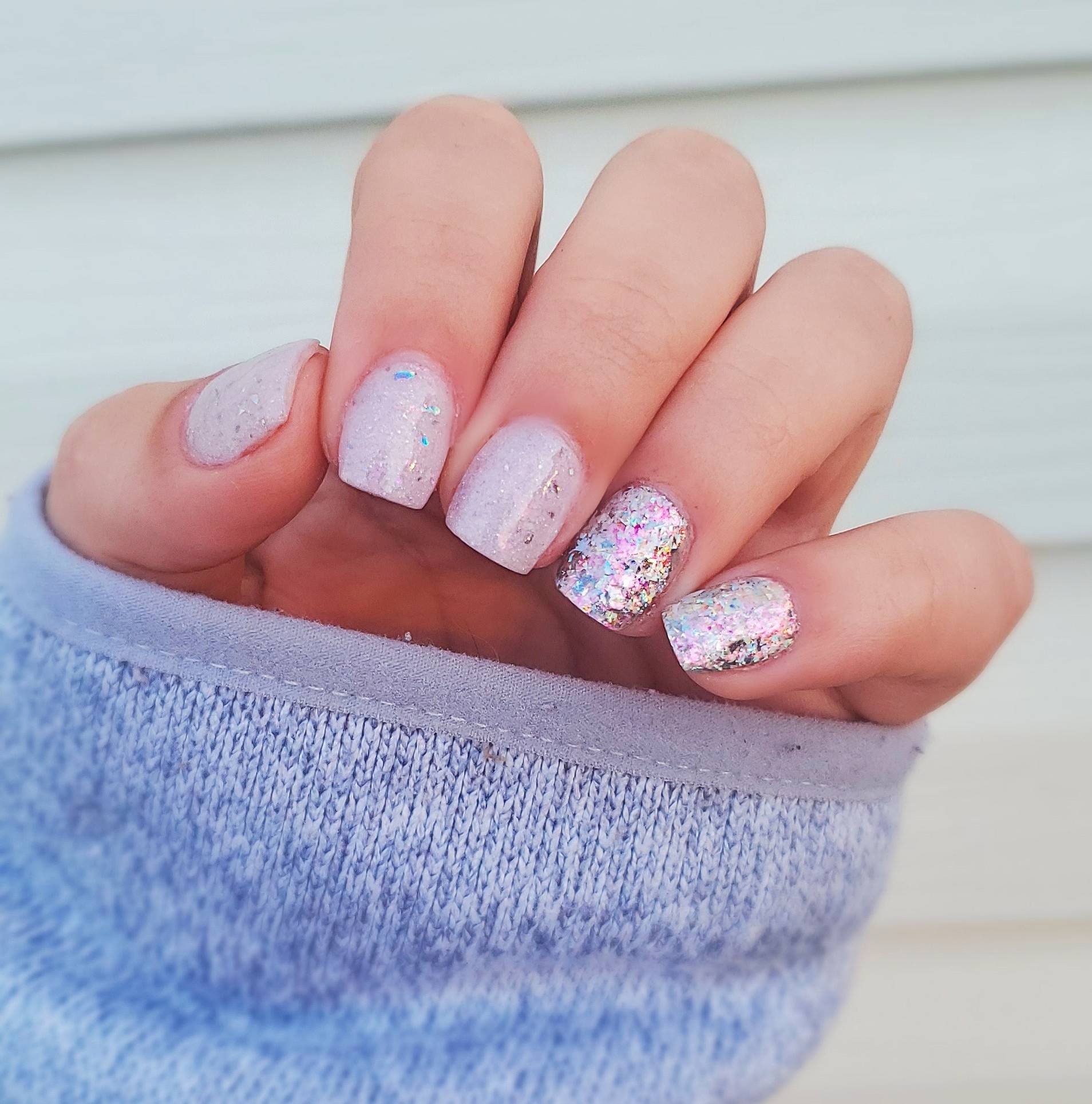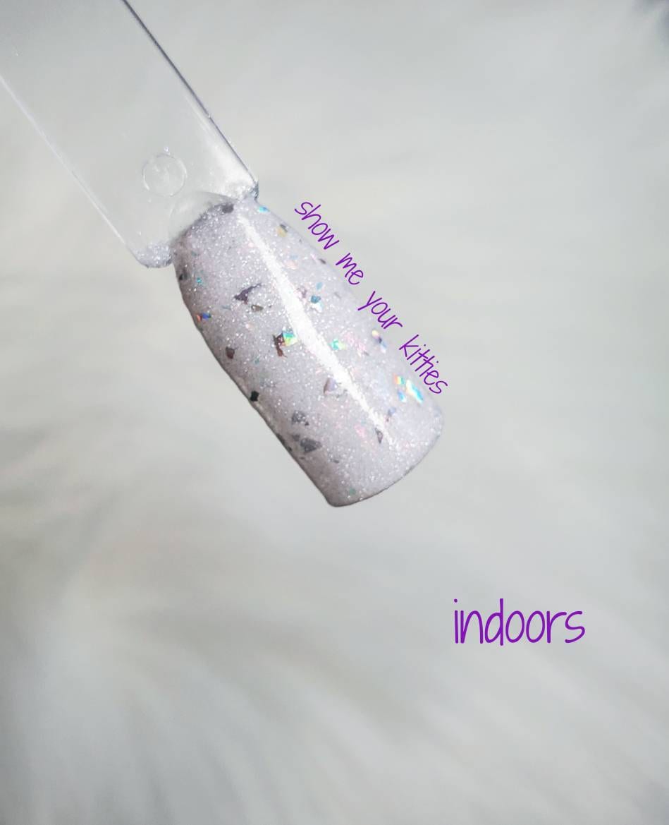 color : UV - white (shade) to purple (sun) with shimmer and holographic flakies.
