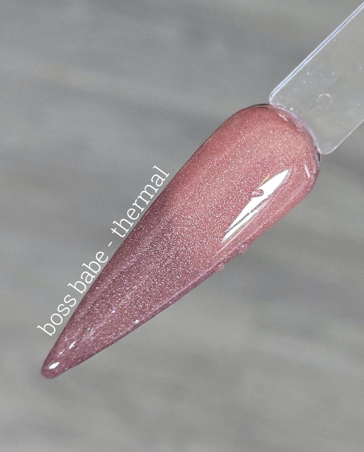 color : thermal - shimmery mauve (warm) to dark purple/mauve (cold).