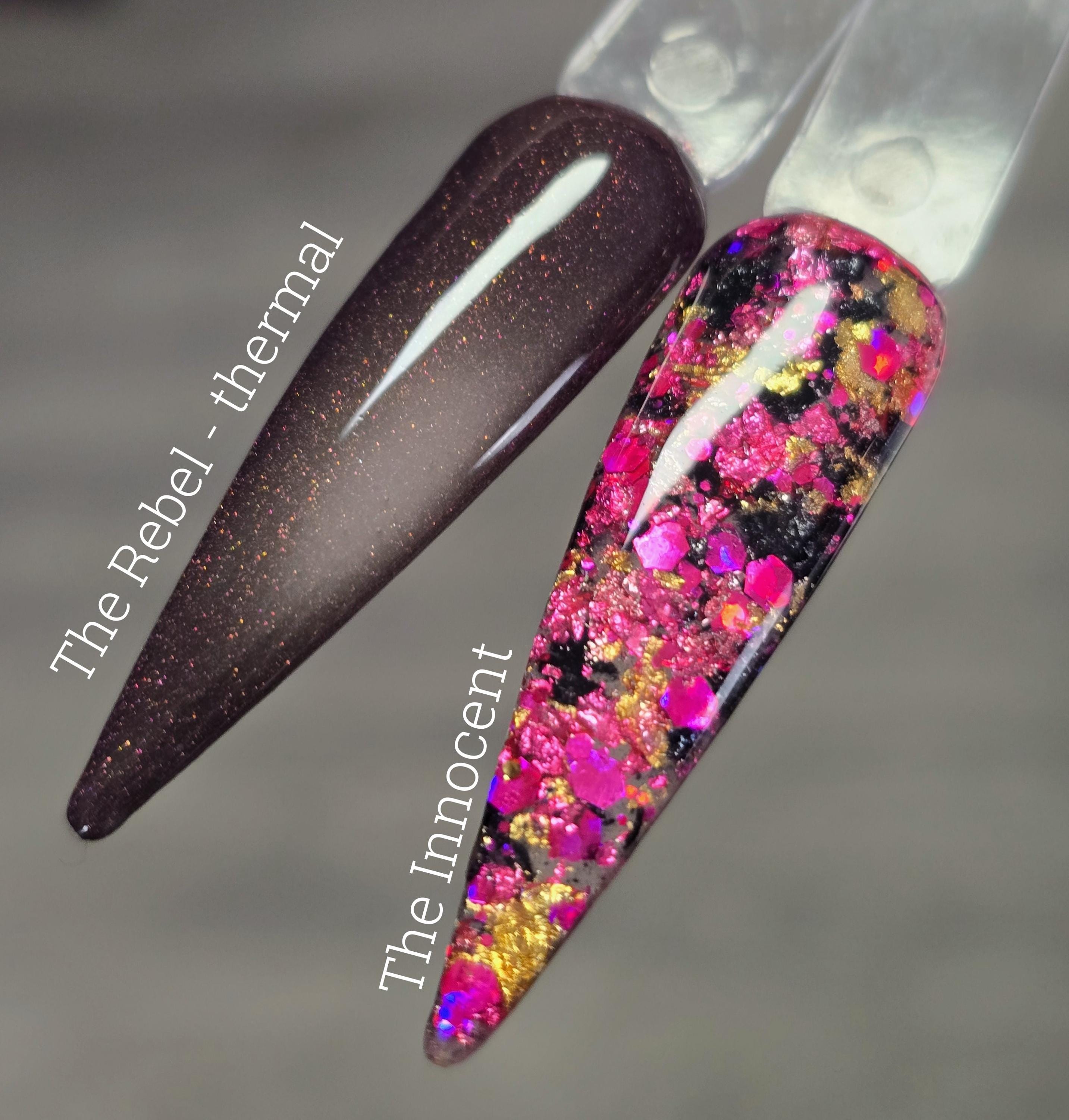 the innocent - pink/black/gold foils with pink holographic chunky glitter mix.