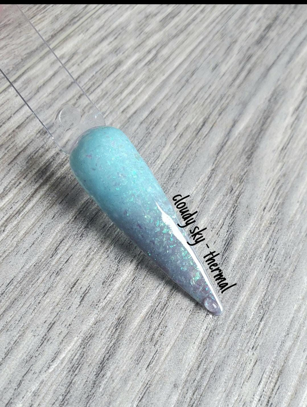 color : light grey (cold) to light aqua (warm) with opal flakies.