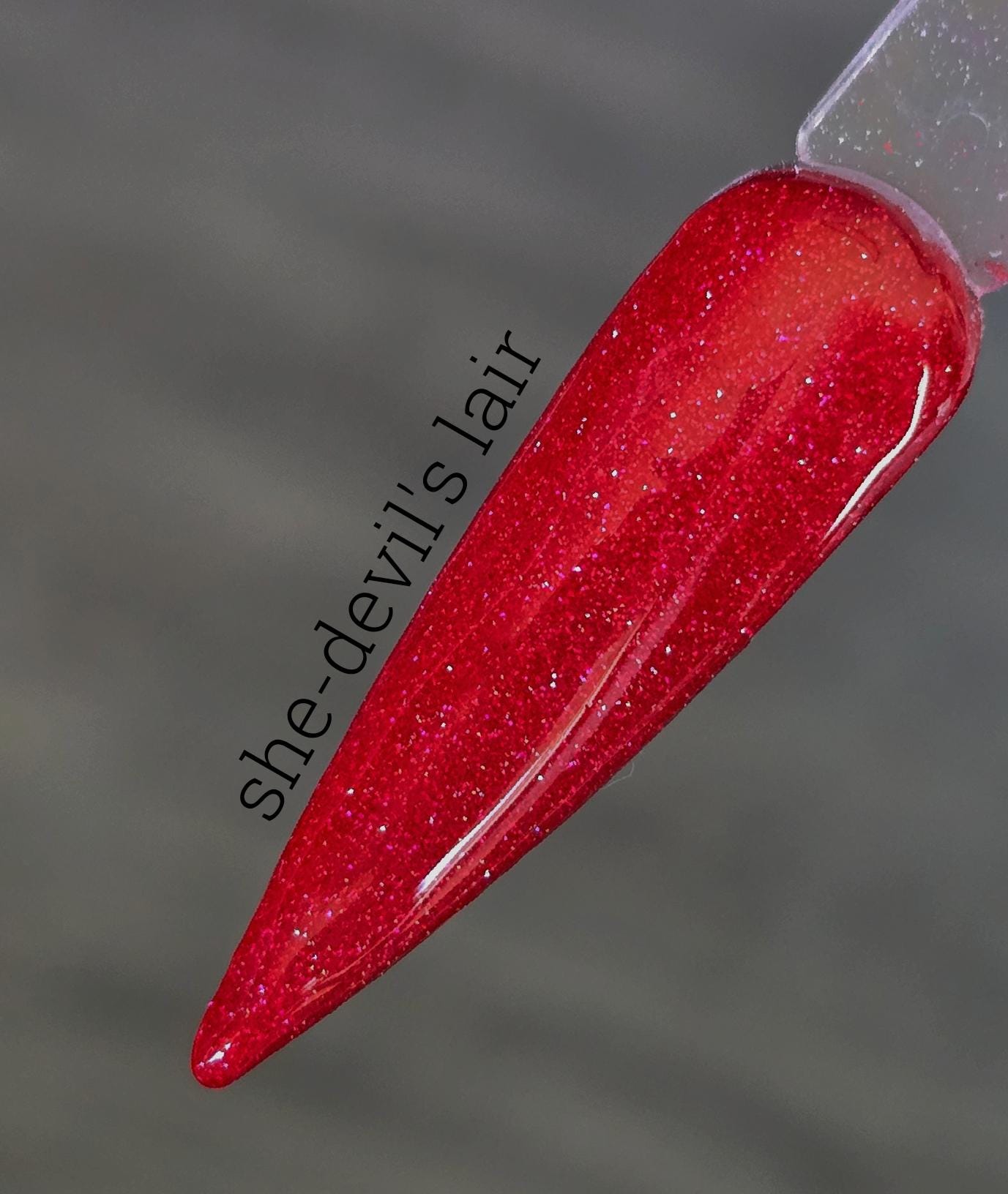 color : red base with micro red flakies and fine red reflective glitter.