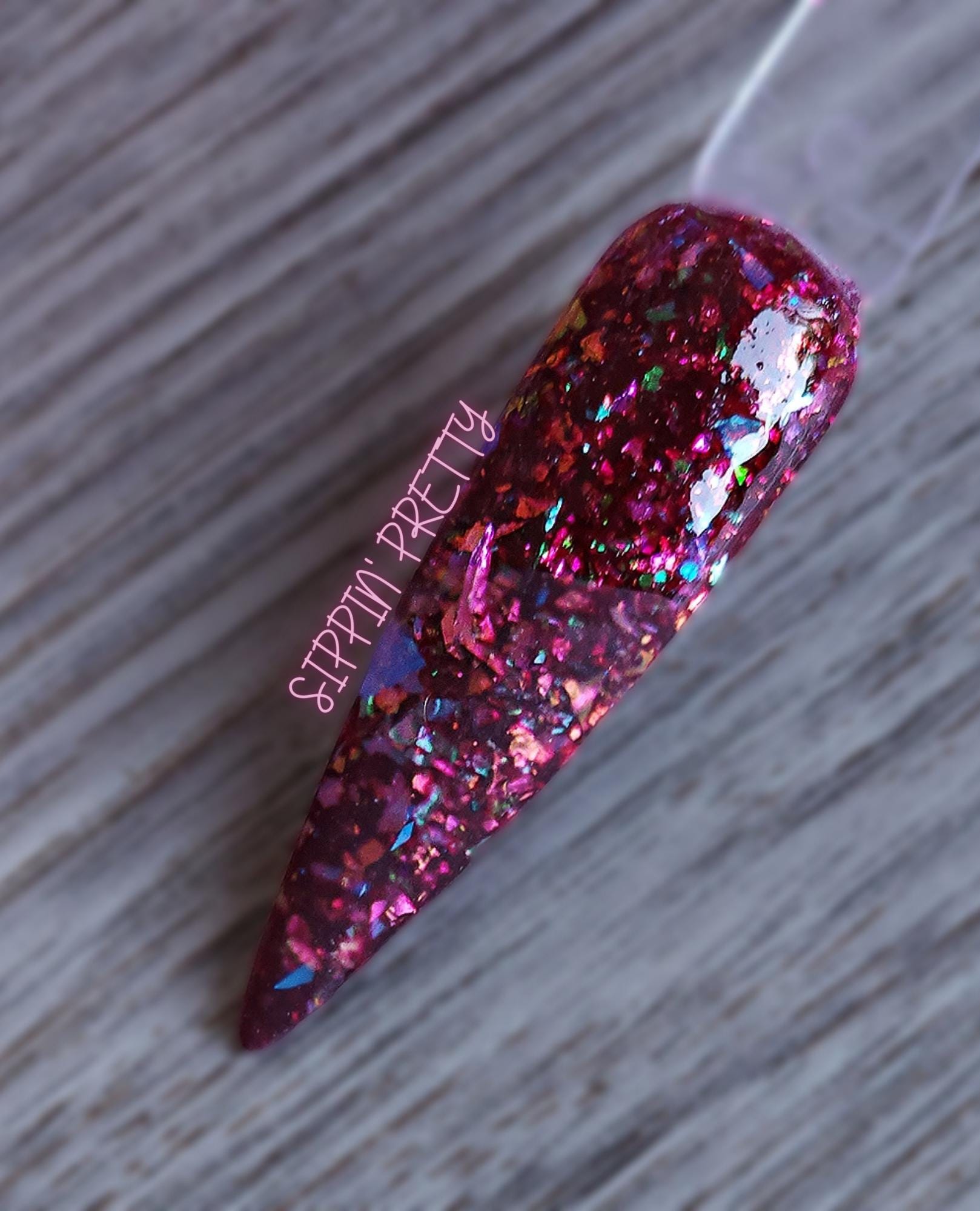 color : wine base with opal flakies.
