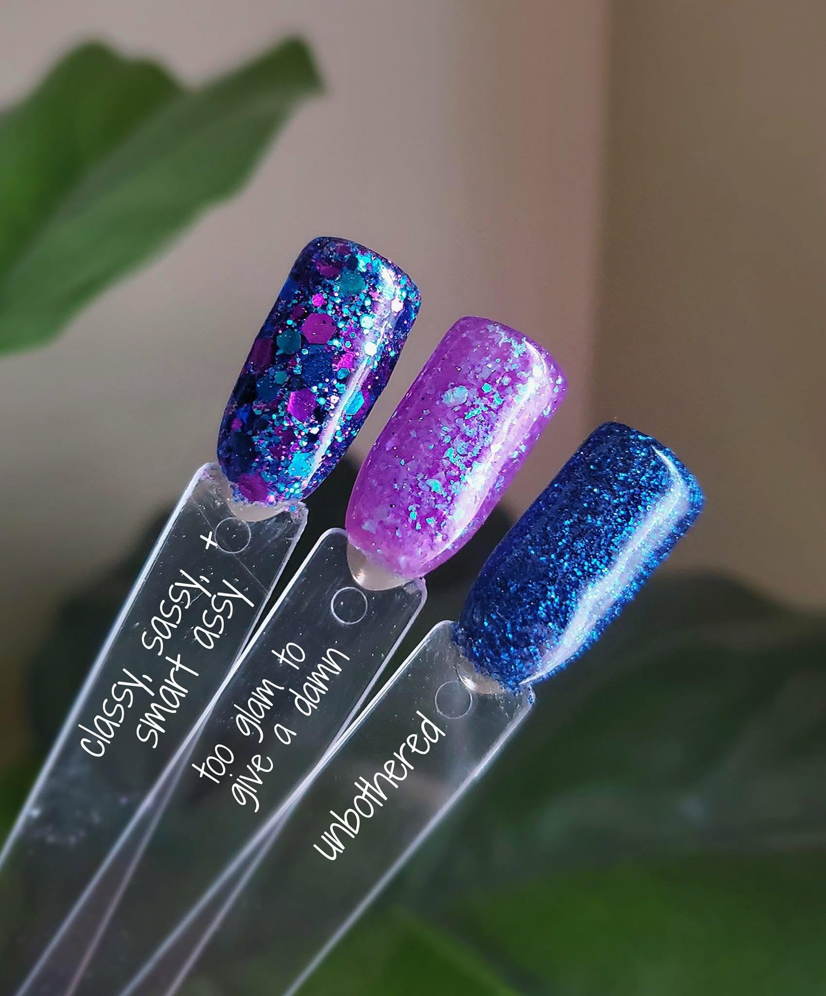 color : classy, sassy, & smart assy - blue/purple glitter mix.