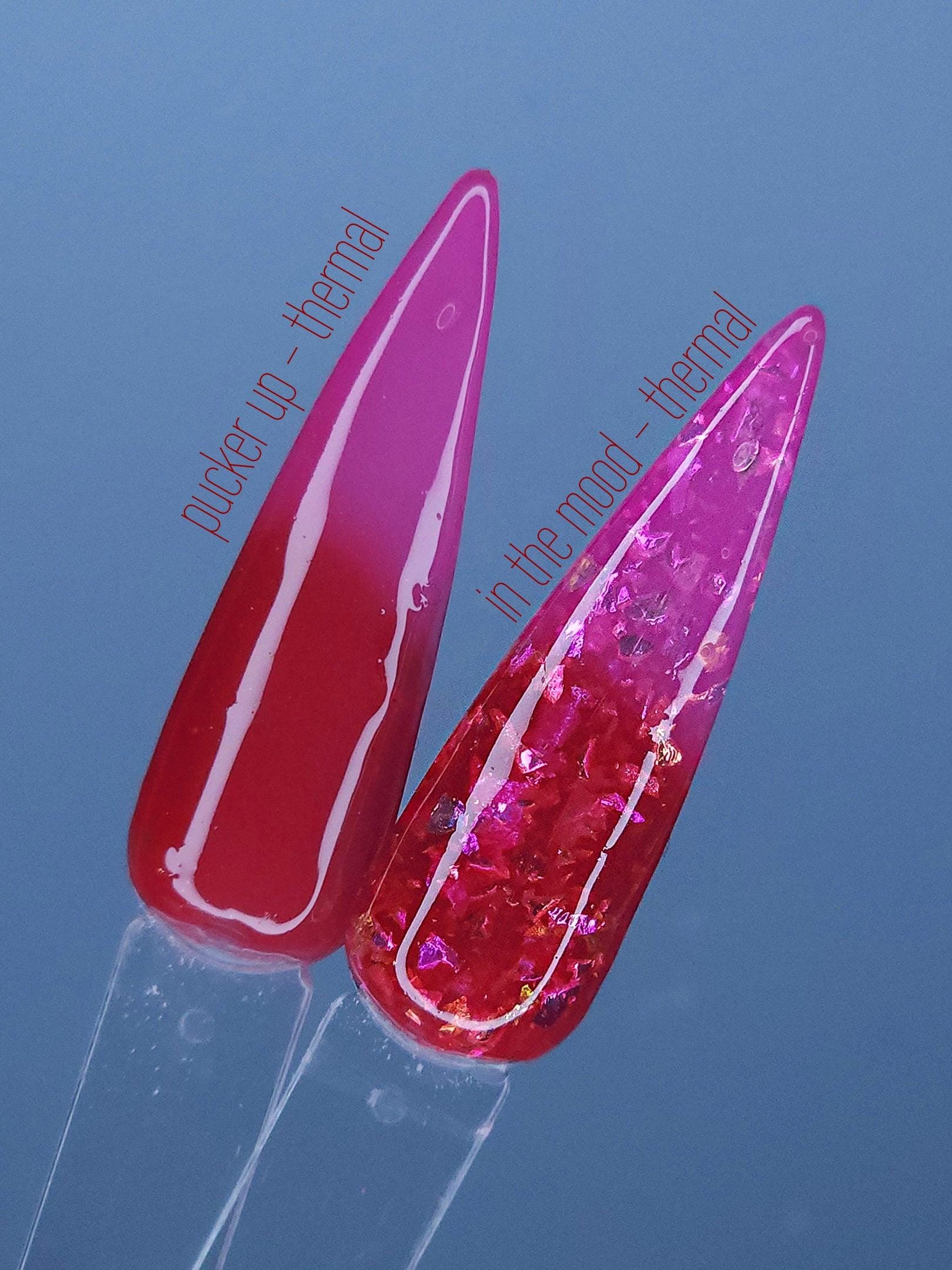 in the mood - thermal - red (cold) to fuschia (warm) with opal flakes.
