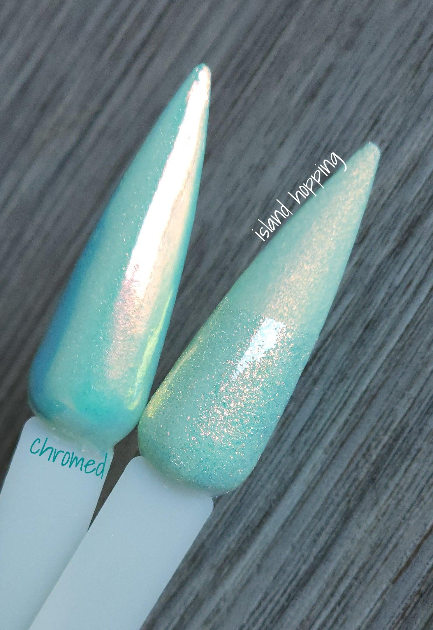color: light green shimmer with blue/gold/pink chameleon pigment.