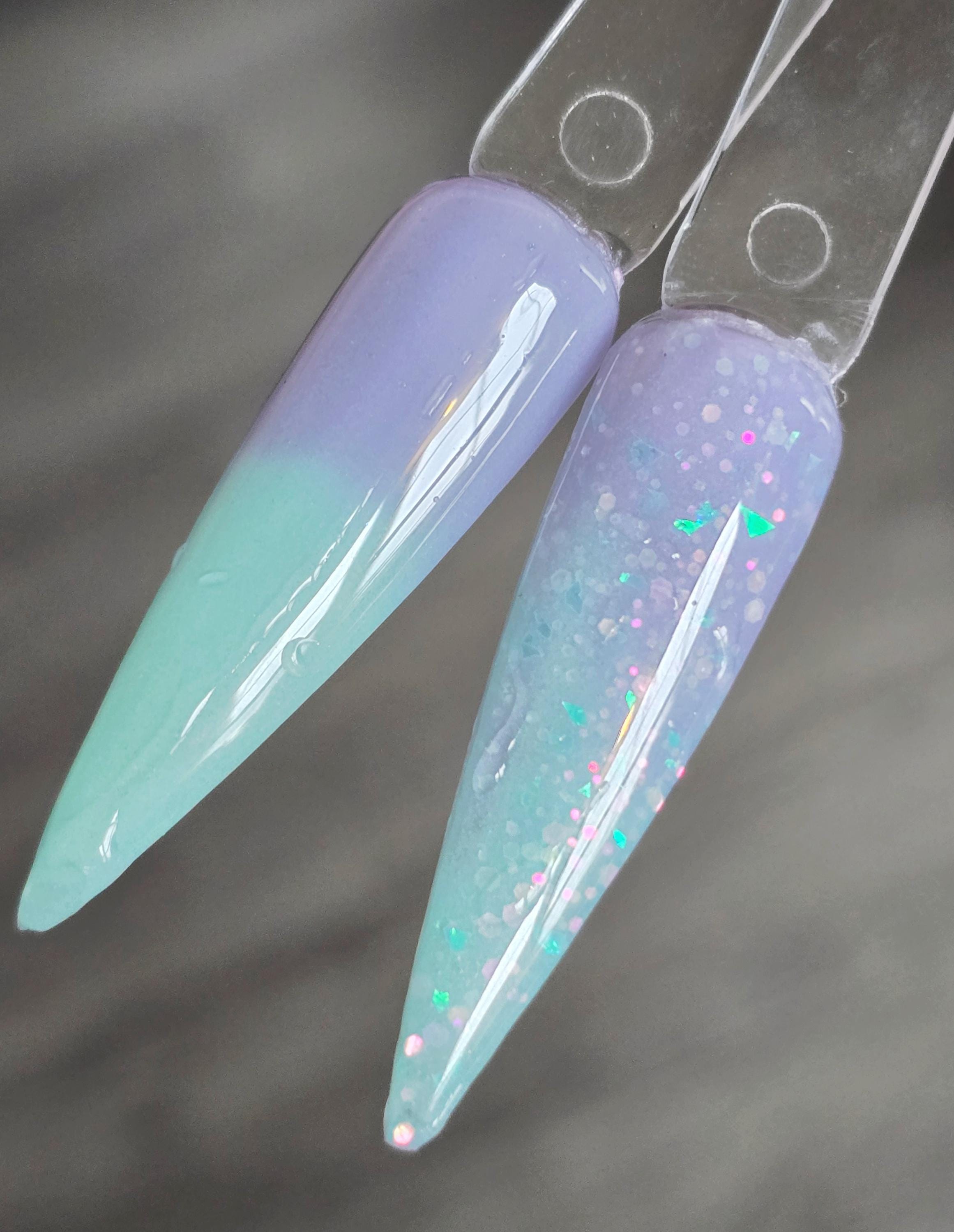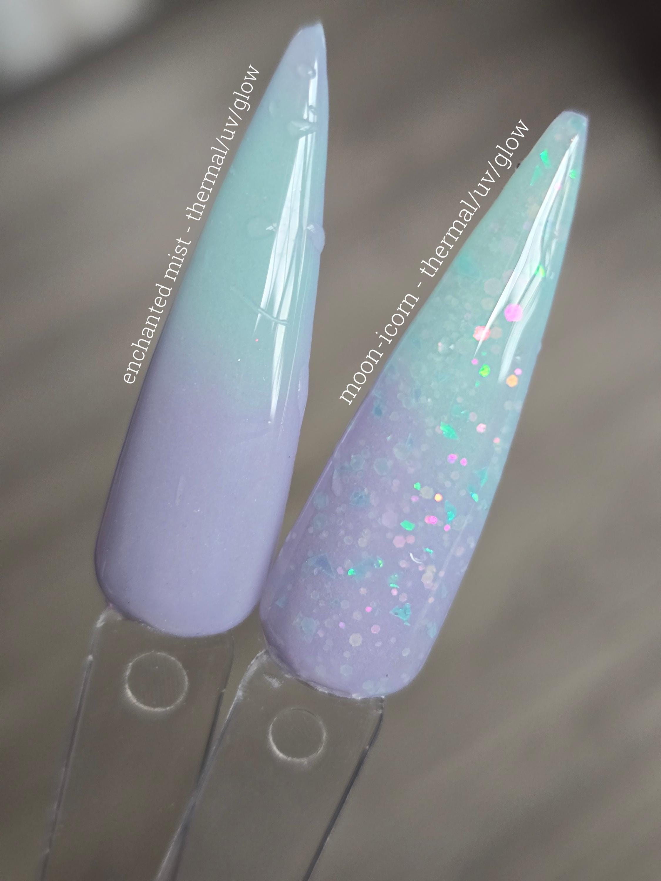 moon-icorn - thermal/uv - enchanted mist base with opal/iridescent glitter/shards.